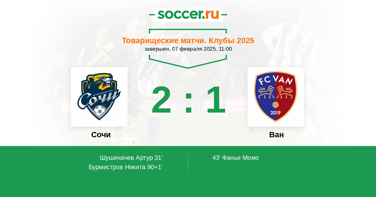 Протокол матча Сочи против Ван
