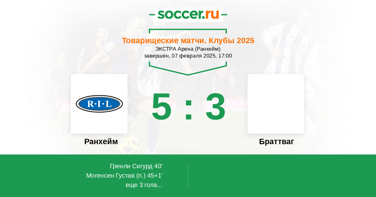 Протокол матча Ранхейм против Браттваг