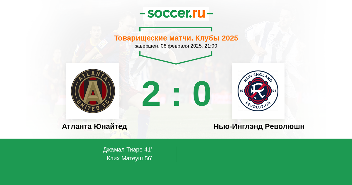 Протокол матча Атланта Юнайтед против Нью-Инглэнд Революшн