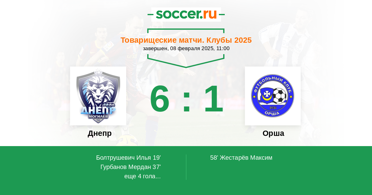 Протокол матча Днепр против Орша