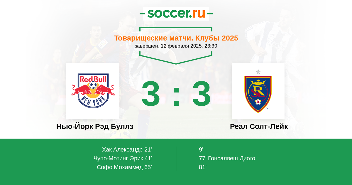 Протокол матча Нью-Йорк Рэд Буллз против Реал Солт-Лейк