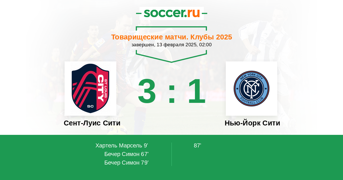 Протокол матча Сент-Луис Сити против Нью-Йорк Сити