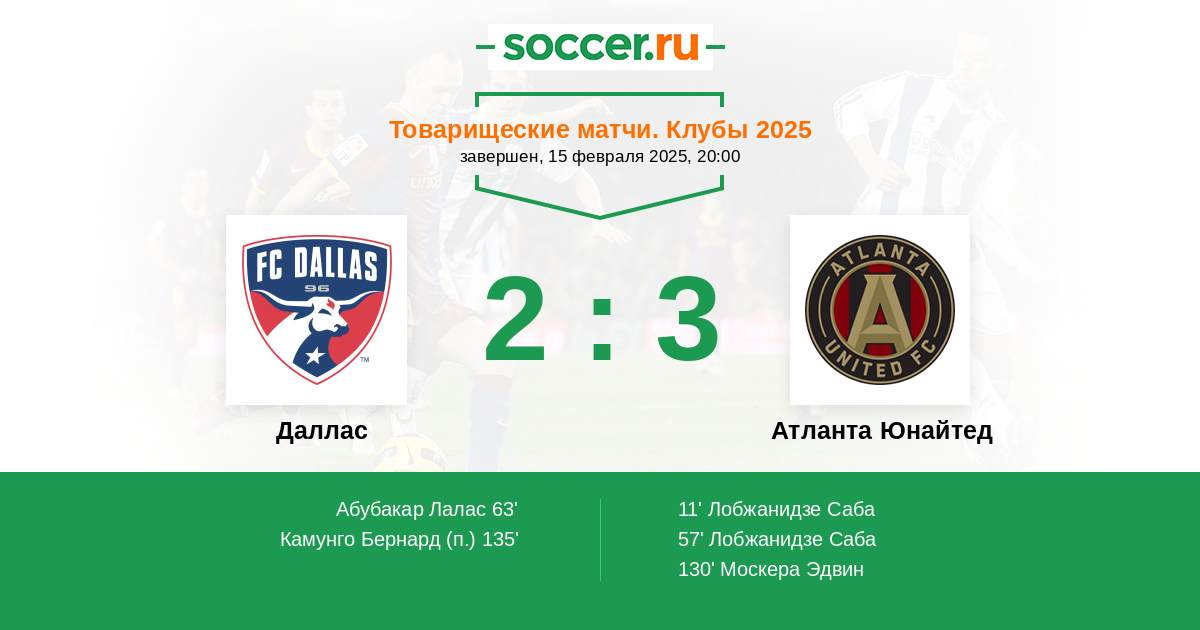 Протокол матча Даллас против Атланта Юнайтед