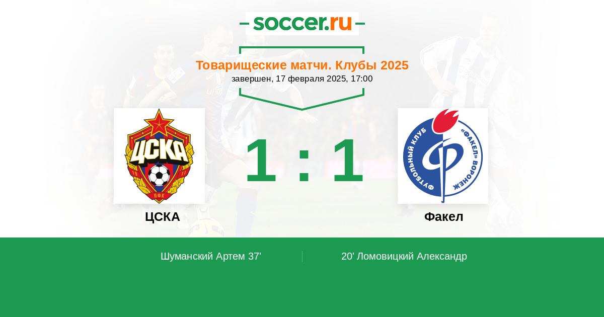 Протокол матча ЦСКА против Факел