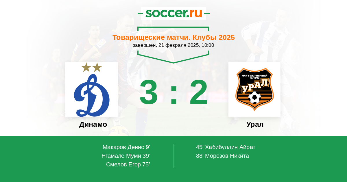 Протокол матча Динамо против Урал