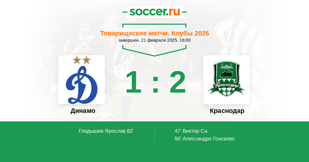 Протокол матча Динамо против Краснодар