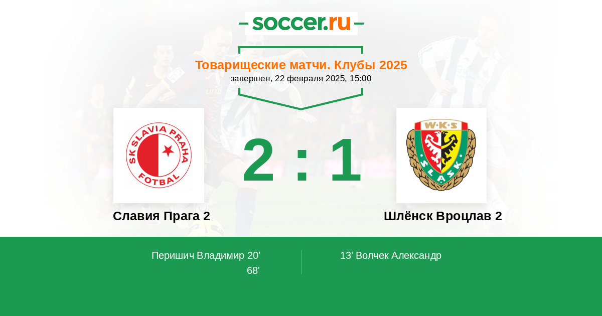 Протокол матча Славия Прага 2 против Шлёнск Вроцлав 2