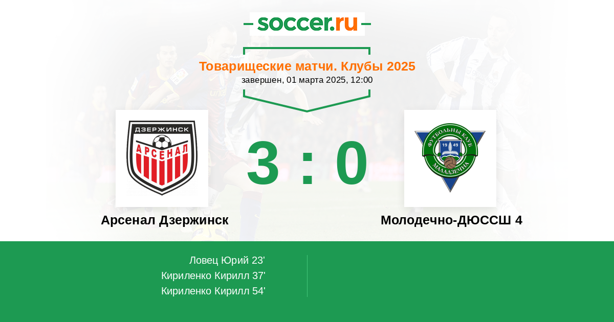 Протокол матча Арсенал Дзержинск против Молодечно-ДЮССШ 4