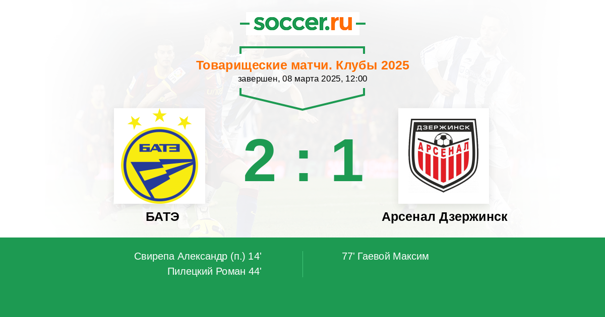 Протокол матча БАТЭ против Арсенал Дзержинск