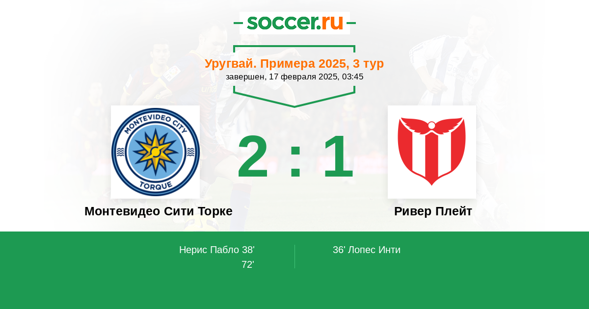 Протокол матча Монтевидео Сити Торке против Ривер Плейт