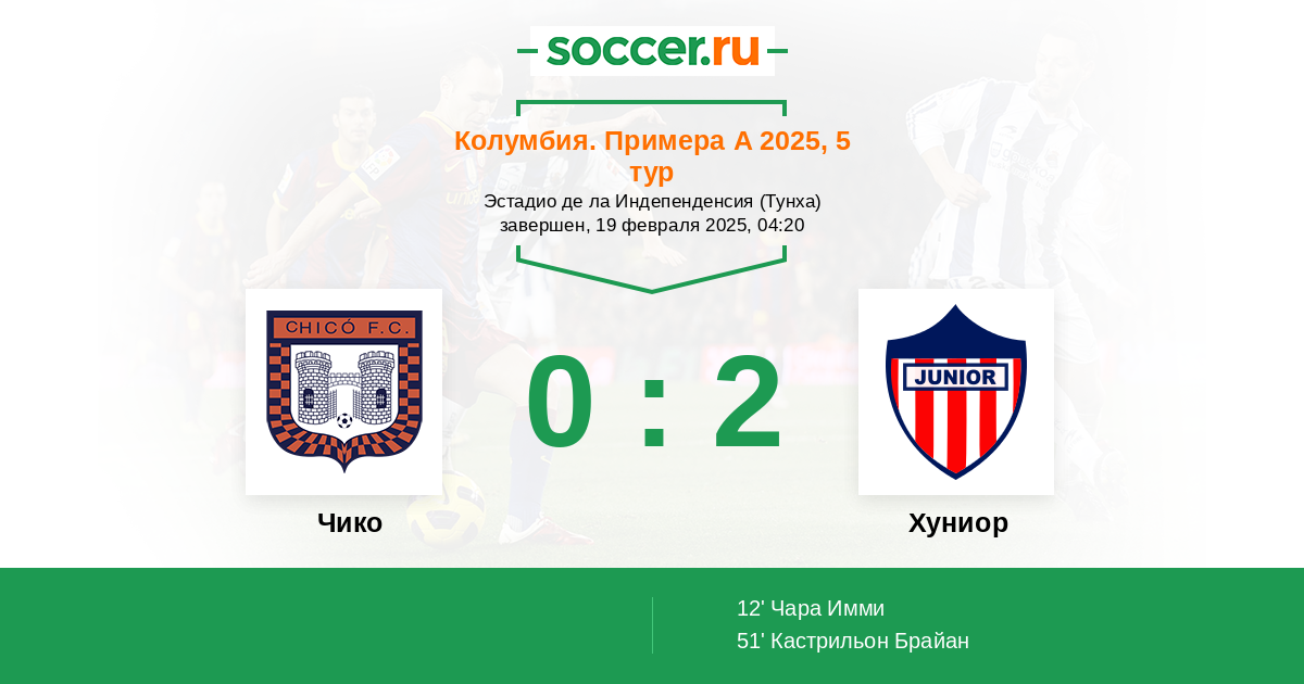 Протокол матча Чико против Хуниор