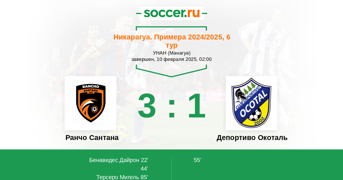 Протокол матча Ранчо Сантана против Депортиво Окоталь