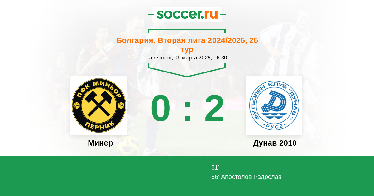 Протокол матча Минер против Дунав 2010