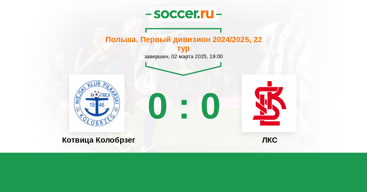 Протокол матча Котвица Колобрзег против ЛКС