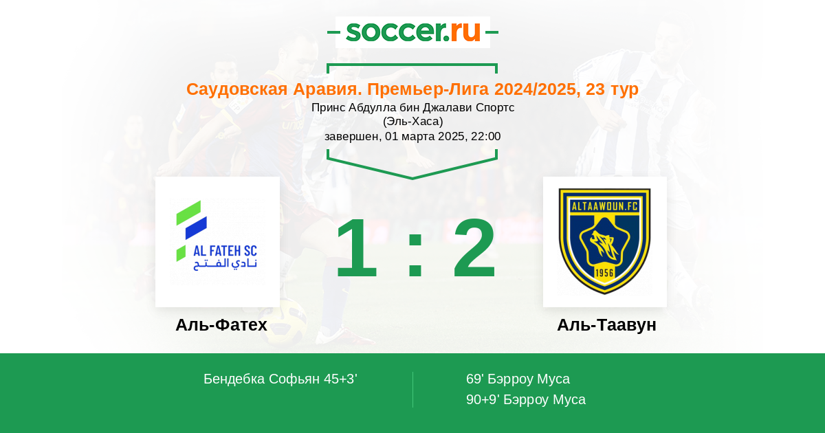 Протокол матча Аль-Фатех против Аль-Таавун