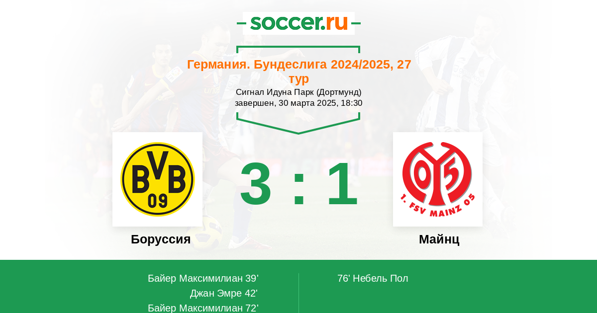 Хоть фаворит этой игры неожиданно Майнц, но Боруссии надо хоть чучуть выправить своё положение в чемпионате Бундеслиги до конца сезона, поэтому дортмундцы вцепятся в этот матч и дадут Майнцу бой