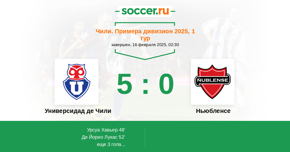 Протокол матча Универсидад де Чили против Ньюбленсе