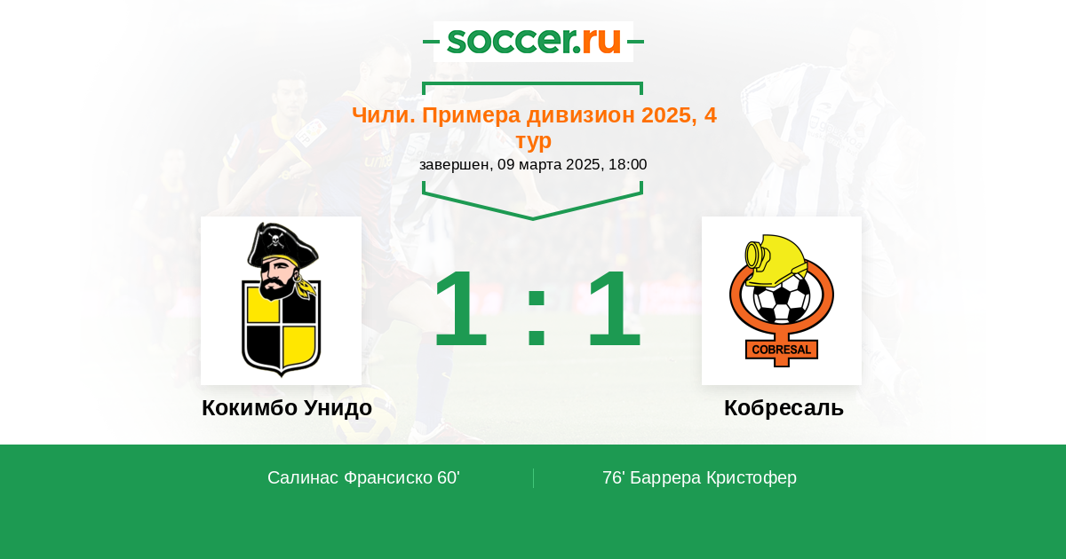 60' (1:0) Салинас Франсиско (17) (Корнехо Хуан (16))