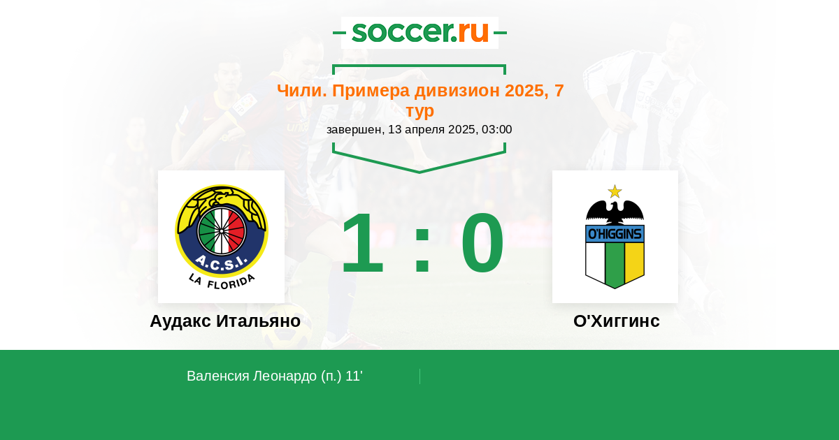 Протокол матча Аудакс Итальяно против О'Хиггинс
