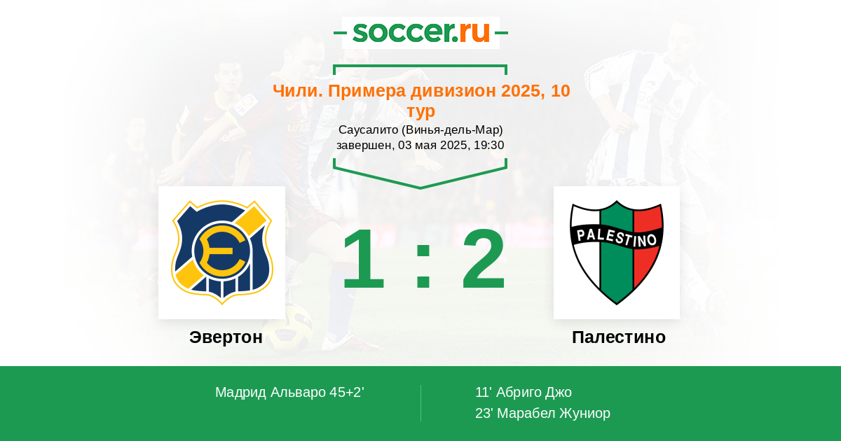 Протокол матча Эвертон против Палестино