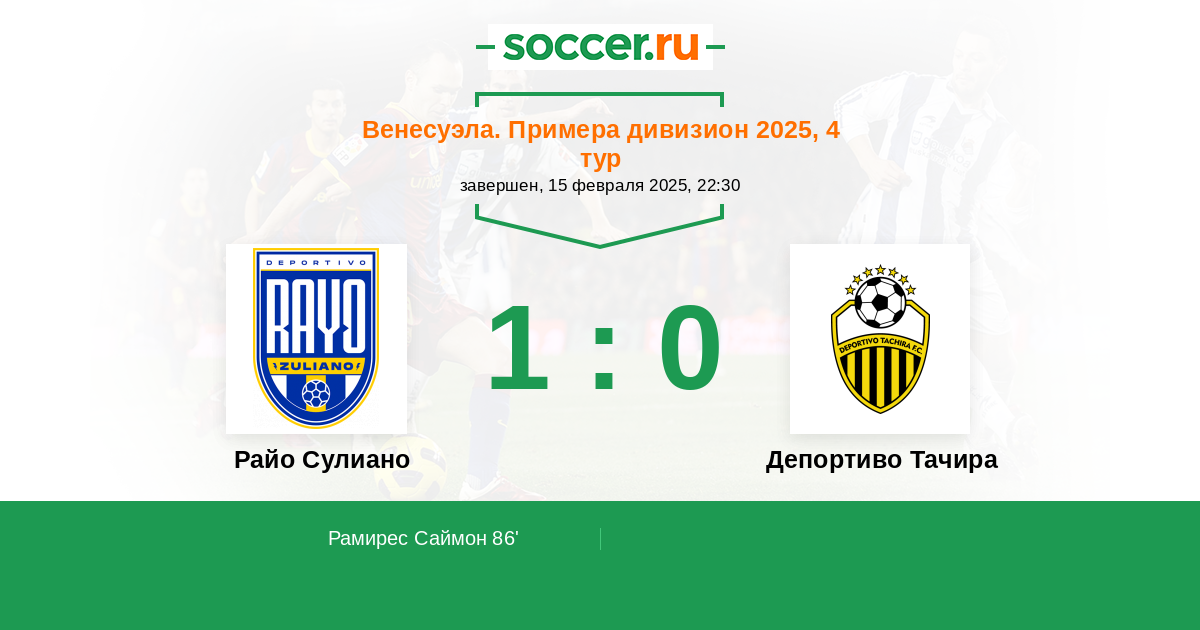 Протокол матча Райо Зулиано против Депортиво Тачира