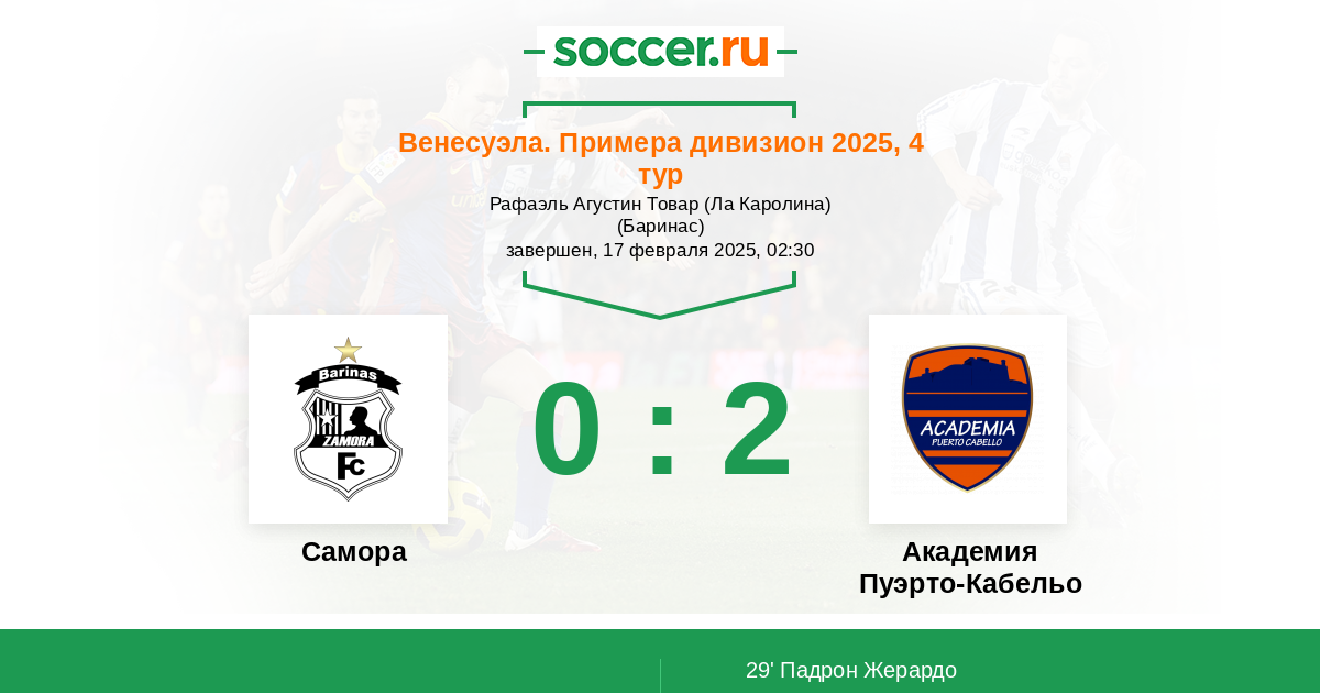 Протокол матча Замора против Пуэрто-Кабельо