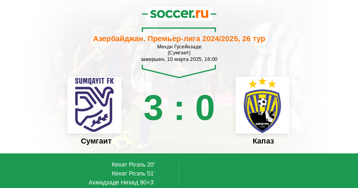 Протокол матча Сумгаит против Кяпаз