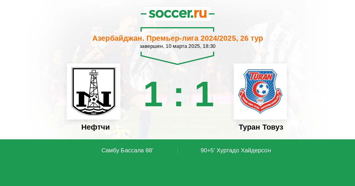 Протокол матча Нефтчи против Туран Товуз