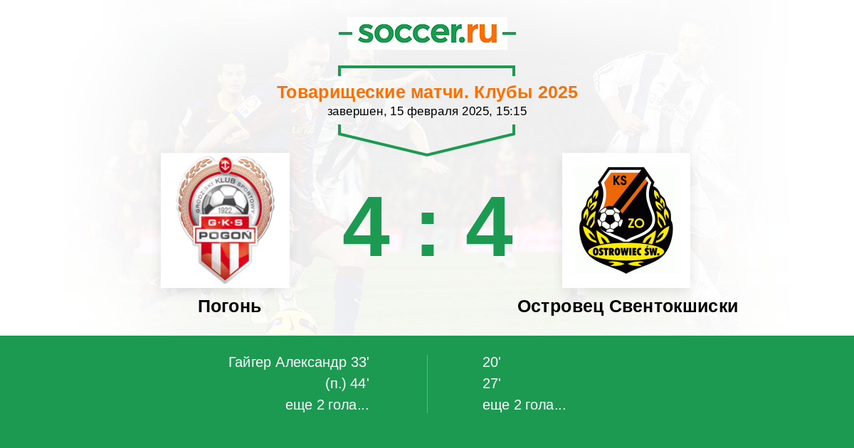 Протокол матча Погонь против Островец Свентокшиски