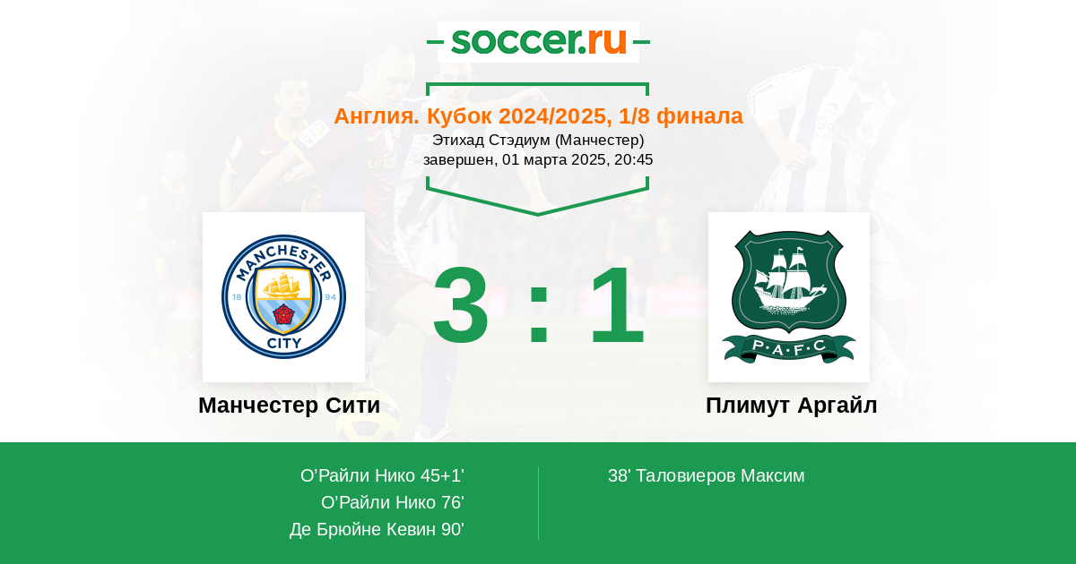 Протокол матча Манчестер Сити против Плимут Аргайл