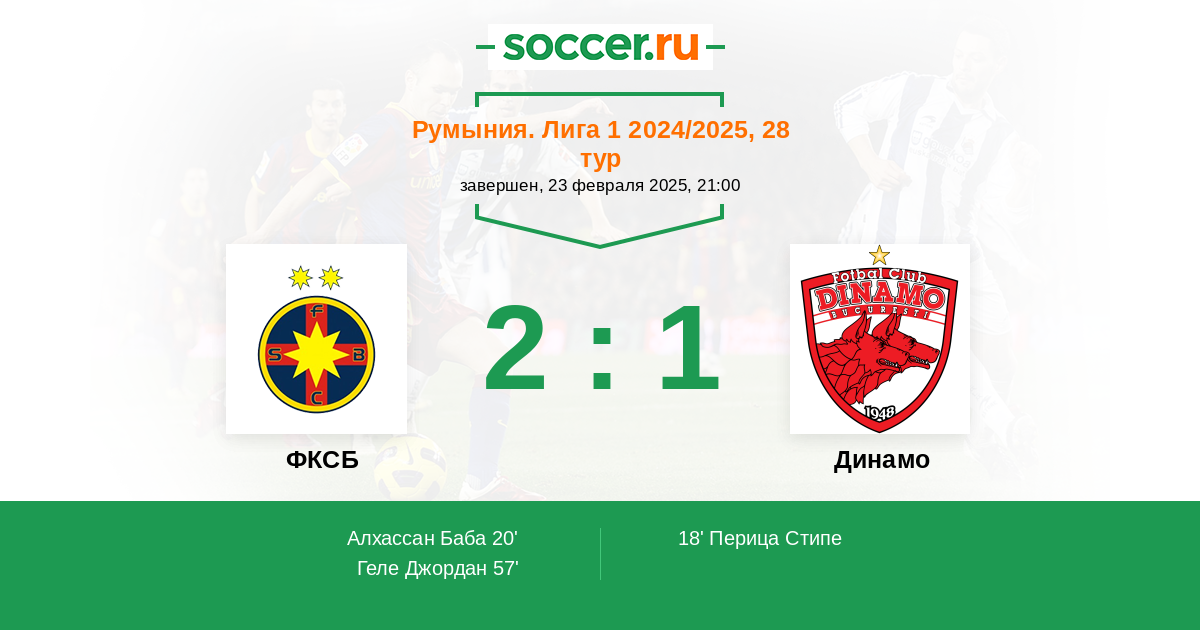 Протокол матча ФКСБ против Динамо
