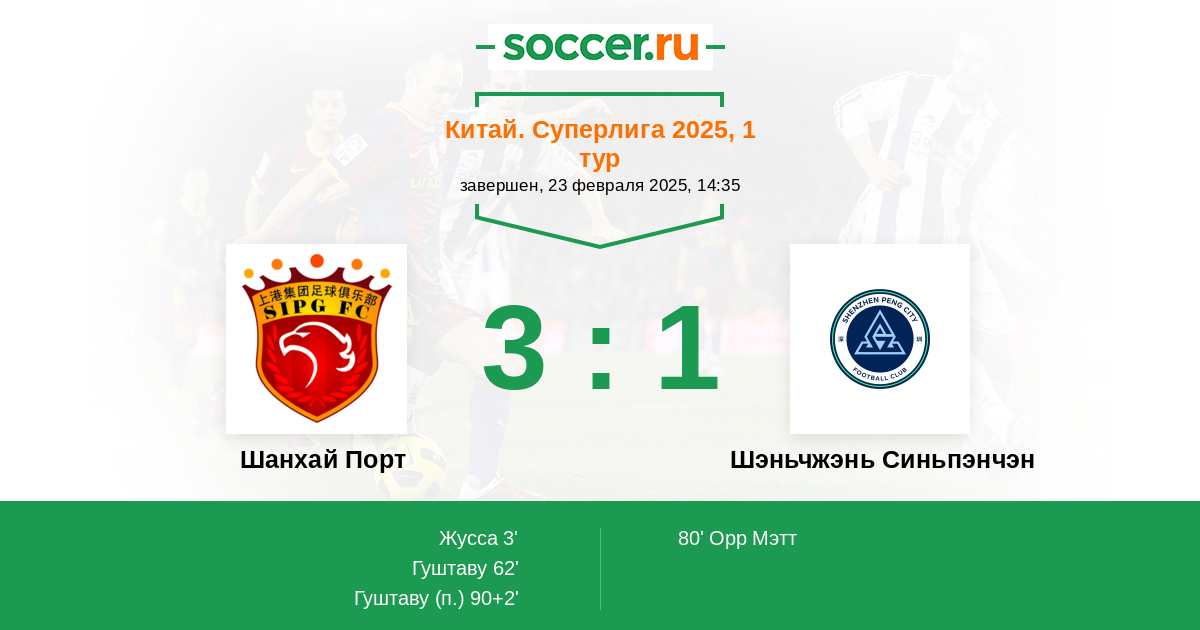 Протокол матча Шанхай Порт против Шэньчжэнь Синьпэнчэн