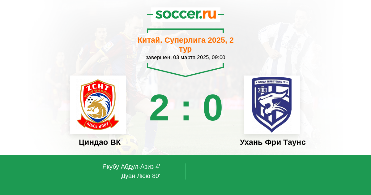 Протокол матча Циндао ВК против Ухань Фри Таунс