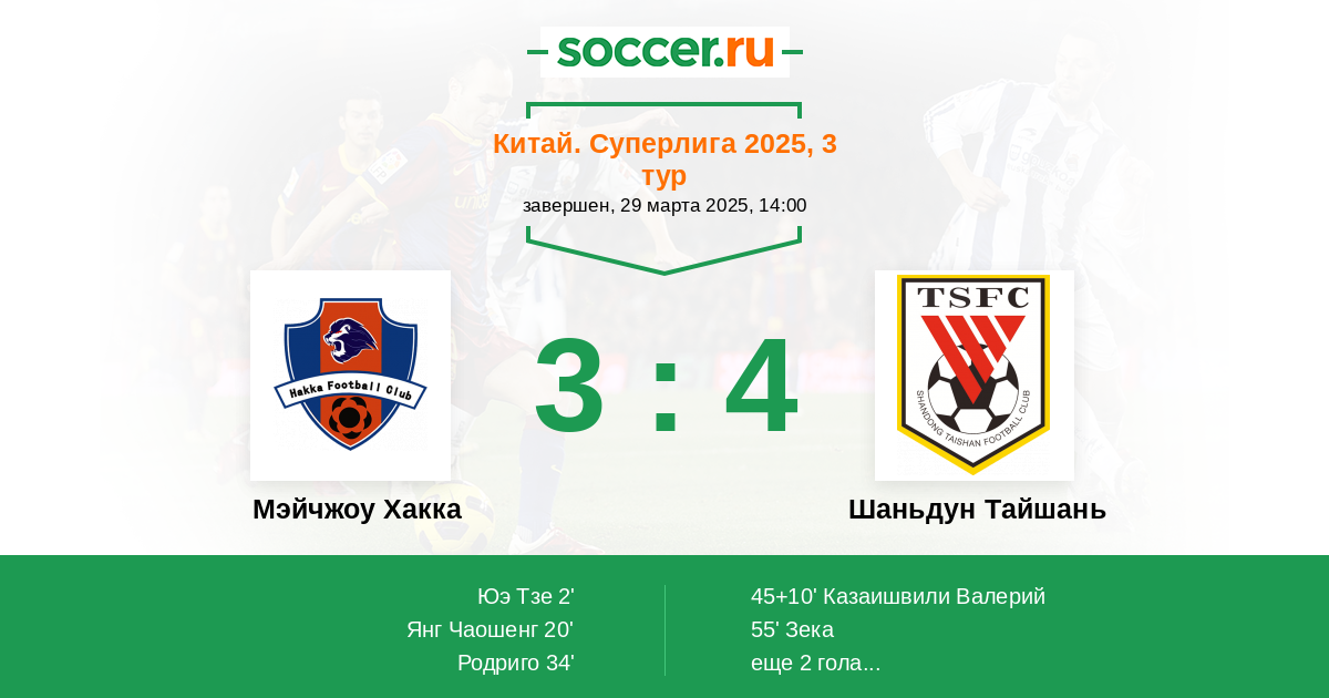 Протокол матча Мэйчжоу Хакка против Шаньдун Тайшань