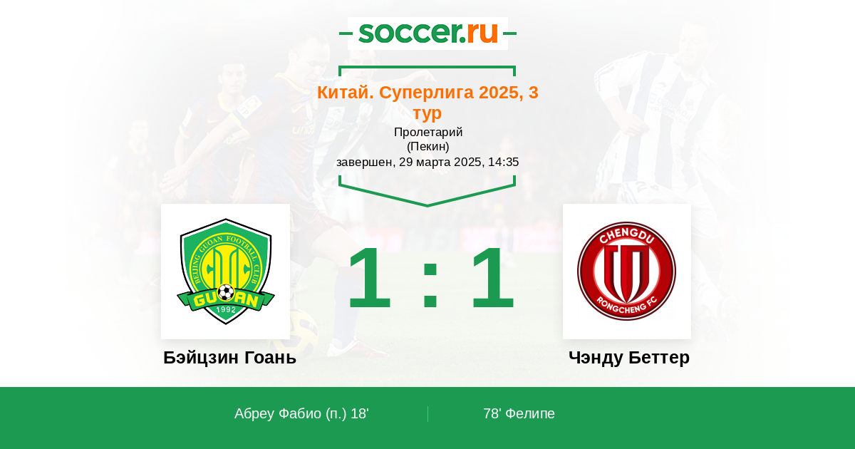Протокол матча Бэйцзин Гоань против Чэнду Беттер