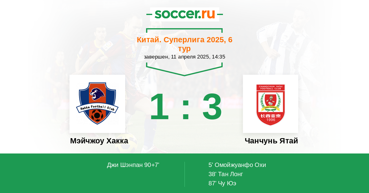 Протокол матча Мэйчжоу Хакка против Чанчунь Ятай