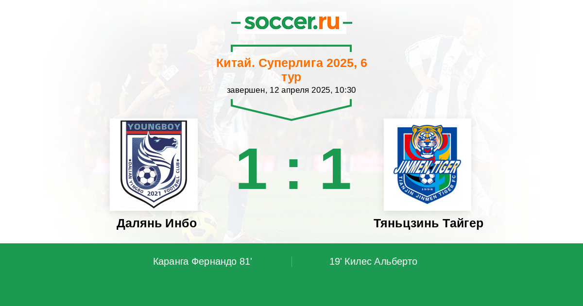Протокол матча Далянь Инбо против Тяньцзинь Тайгер