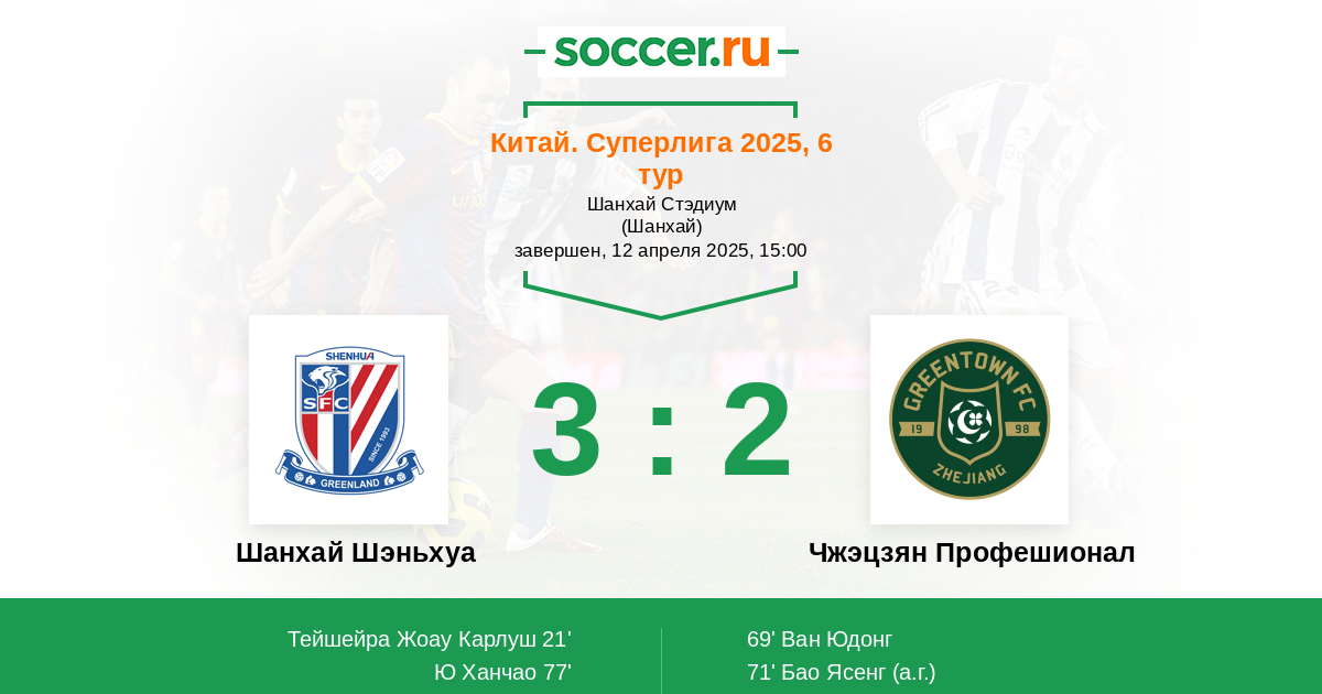 Протокол матча Шанхай Шэньхуа против Чжэцзян Профешионал