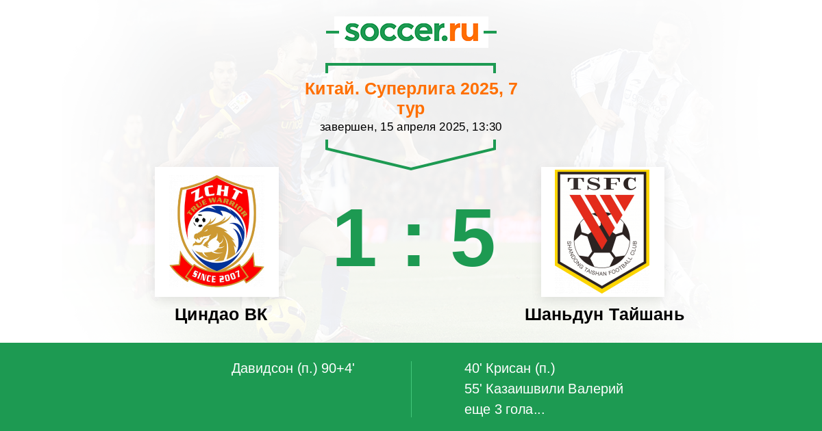 Протокол матча Циндао ВК против Шаньдун Тайшань