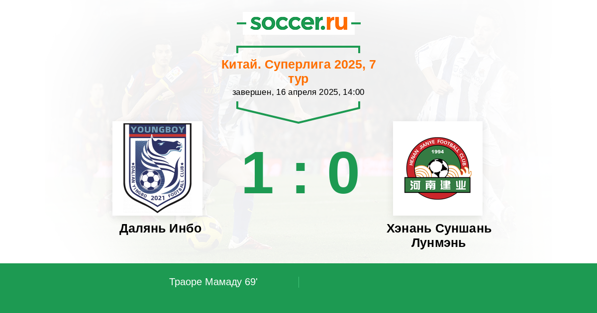 Протокол матча Далянь Инбо против Хэнань Суншань Лунмэнь