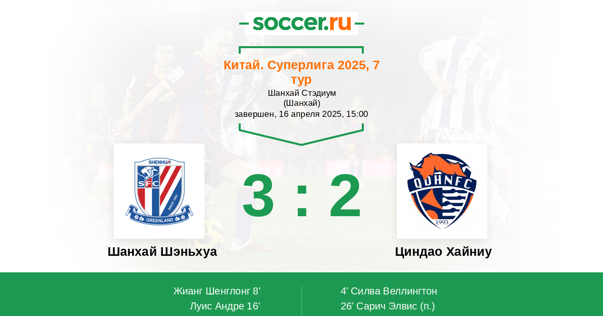 Протокол матча Шанхай Шэньхуа против Циндао Хайниу