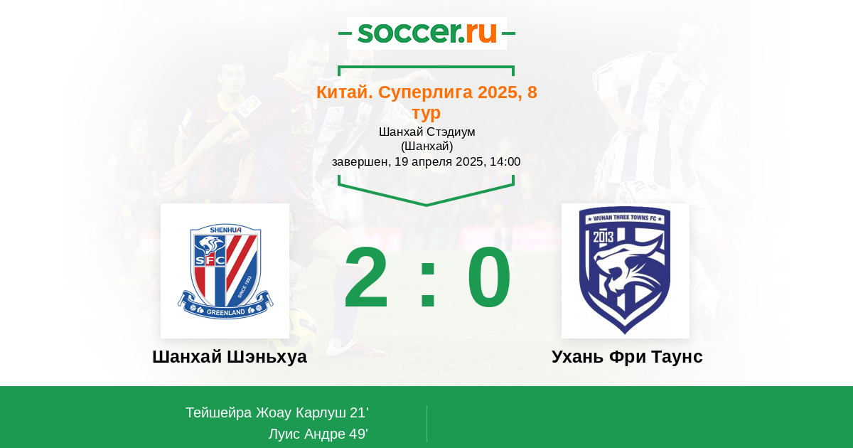 Протокол матча Шанхай Шэньхуа против Ухань Фри Таунс