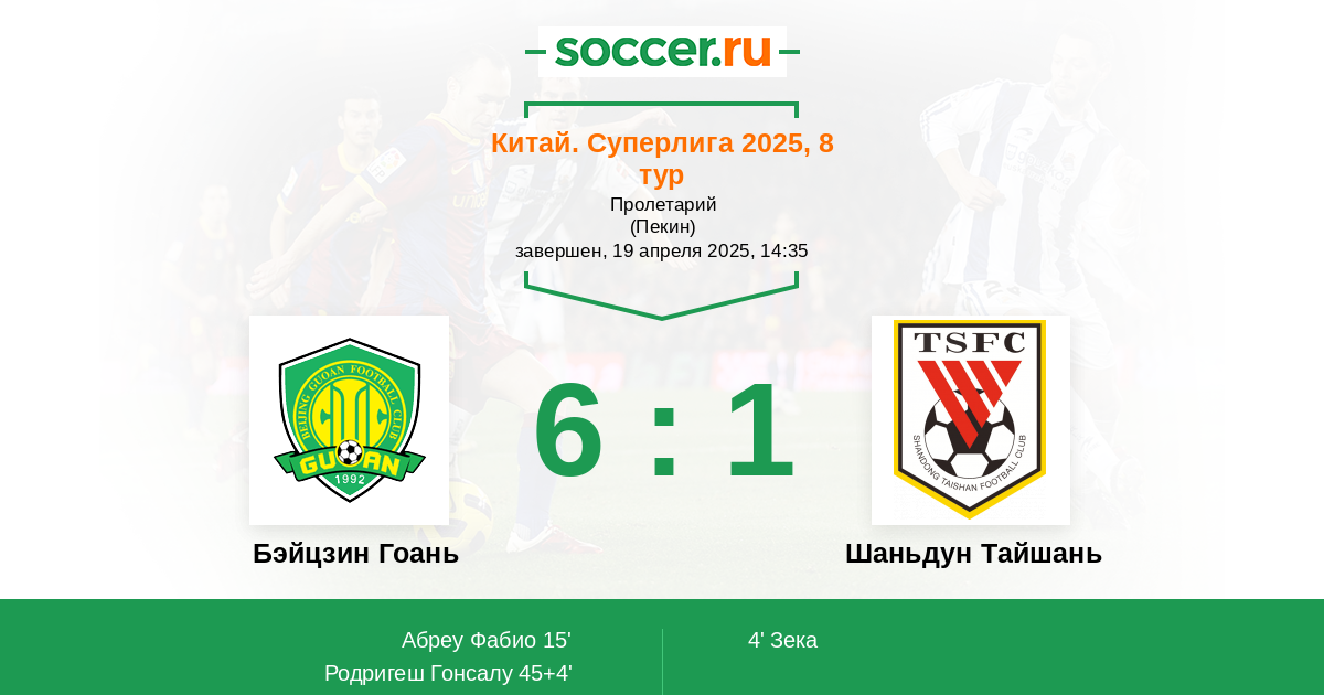 Протокол матча Бэйцзин Гоань против Шаньдун Тайшань