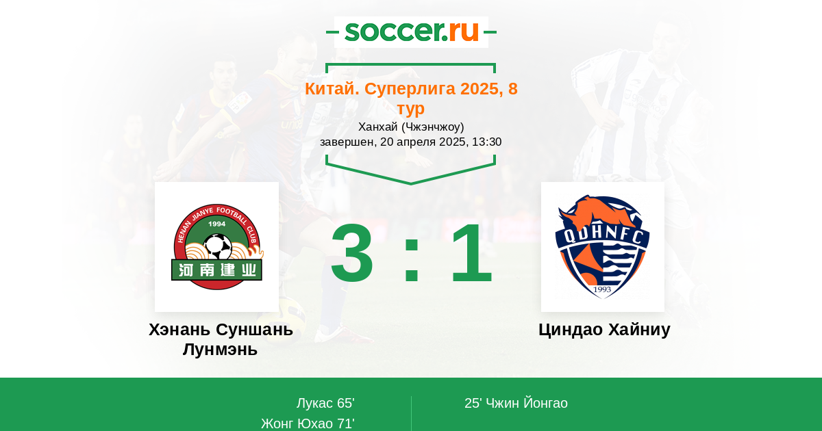 Протокол матча Хэнань Суншань Лунмэнь против Циндао Хайниу