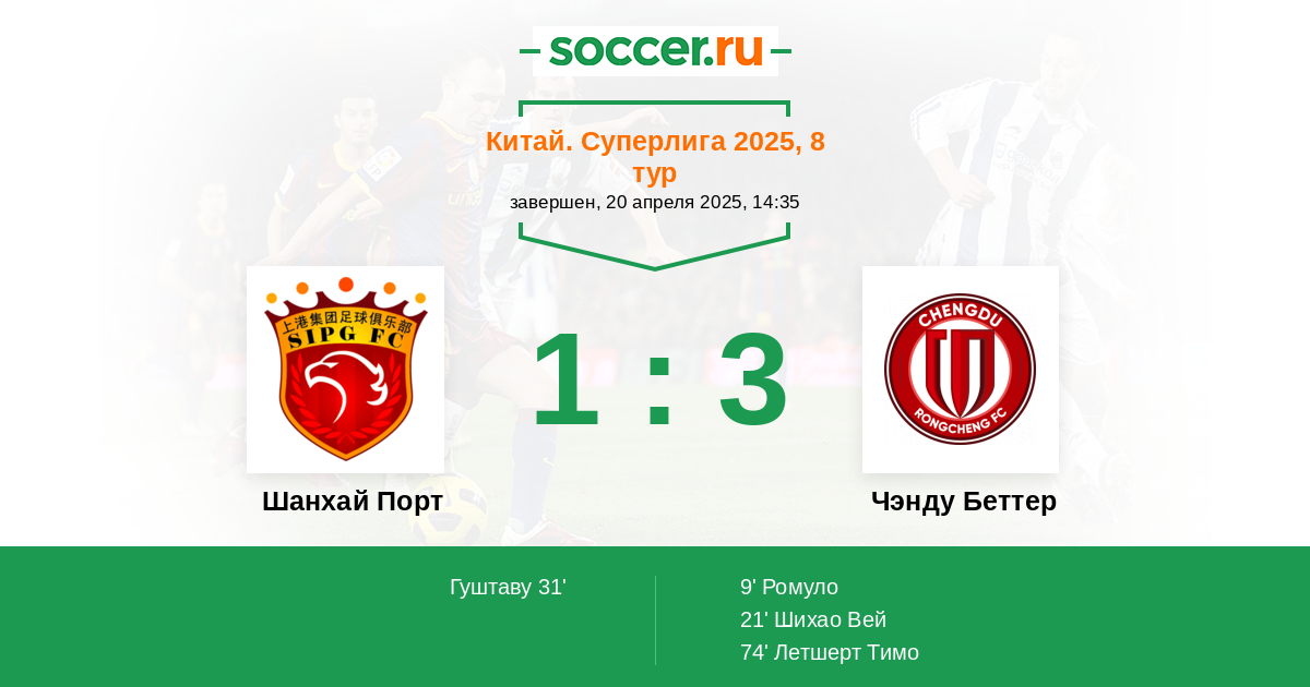 Протокол матча Шанхай Порт против Чэнду Беттер