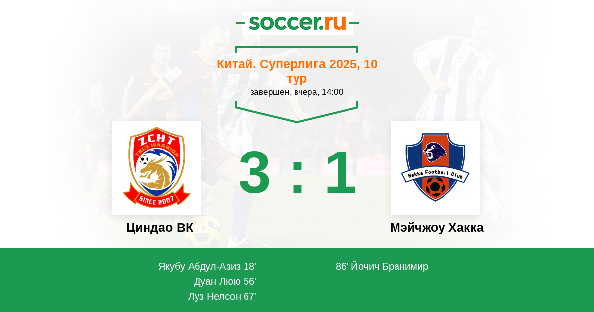 Протокол матча Циндао ВК против Мэйчжоу Хакка