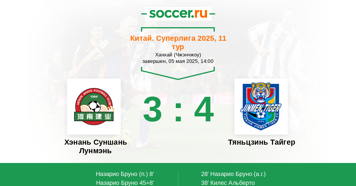 Протокол матча Хэнань Суншань Лунмэнь против Тяньцзинь Тайгер