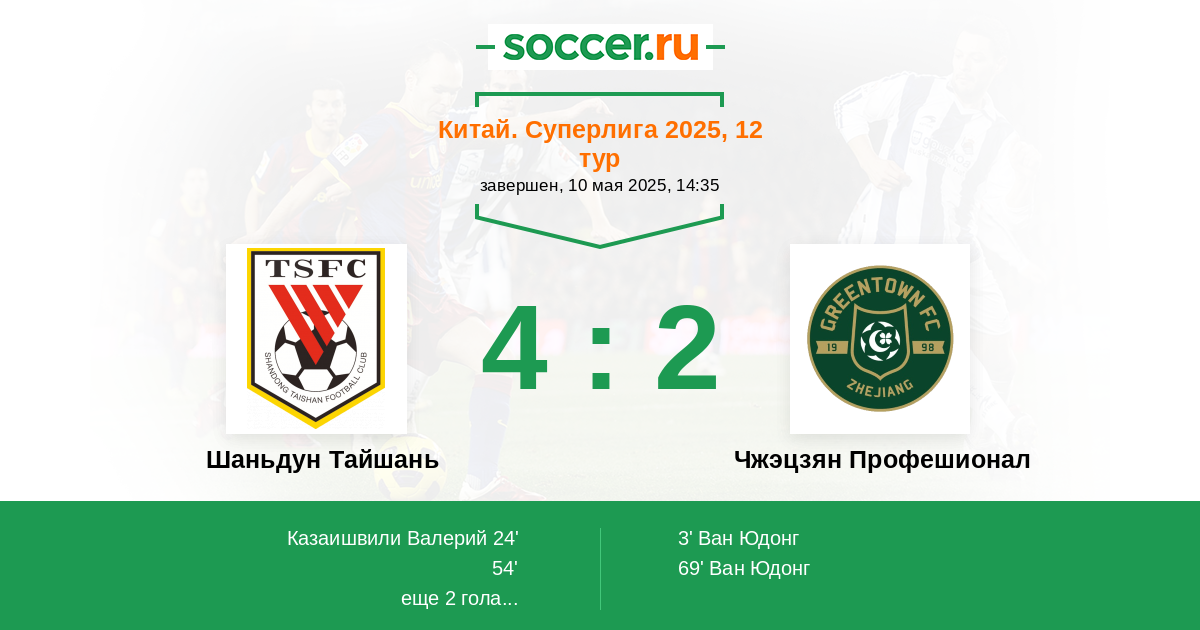 Протокол матча Шаньдун Тайшань против Чжэцзян Профешионал