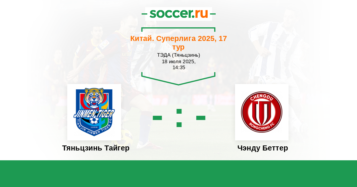 Протокол матча Тяньцзинь Тайгер против Чэнду Беттер
