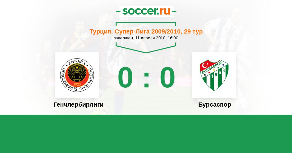 Турция. Суперлига 30.09.2011 Бурсаспор Логотип футбольный клуб Бурсаспор 4:0 Логотип футбольный клуб Генчлербирлиги (Анкара) Генчлербирлиги